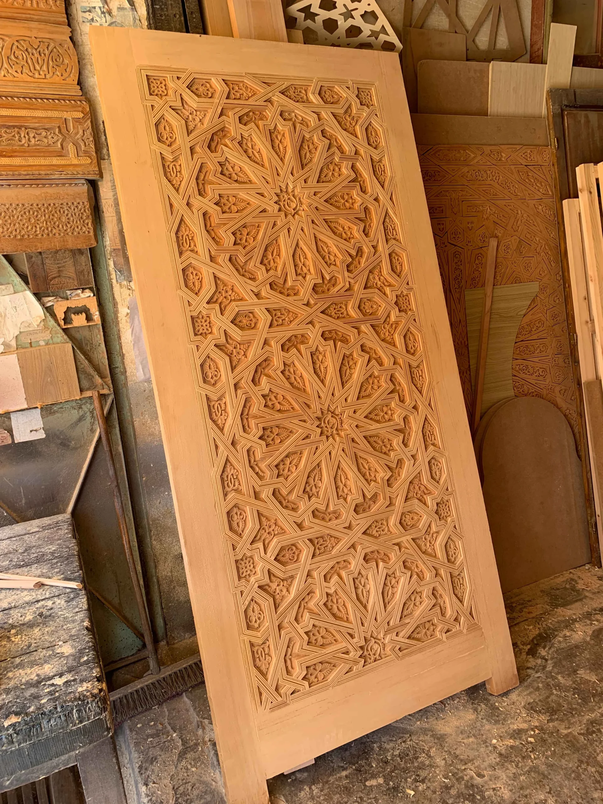 Moroccan Sliding Door: Moorish Carved Wood, Custom Made